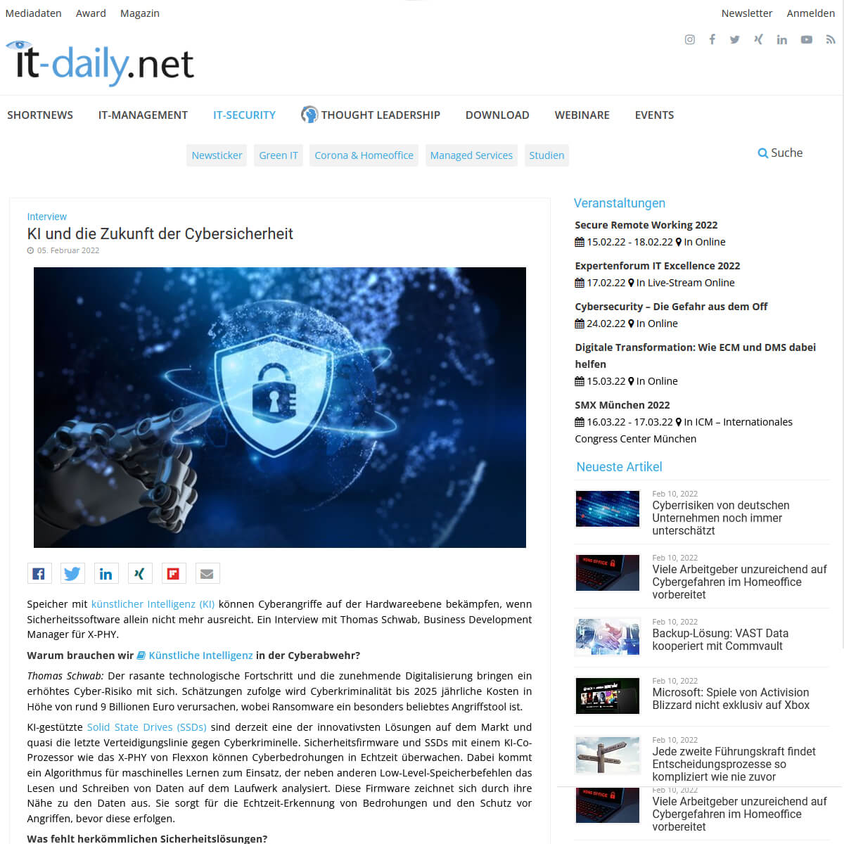 Revolutionieren Sie den Cybersicherheitsstandard auf der NAND-Speicher-Ebene mit der weltweit ersten eigenständigen X-PHY® Embedded KI Cyber Secure SSD.